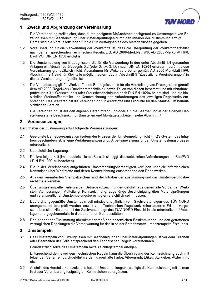 Hierbei werden die Erzeugnisse gemäß den festgelegten Technischen Regeln umgestempelt.